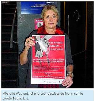 Je suis le procès parce que j’ai travaillé avec les professeurs de Sadia. Quand elle est morte, ils m’ont contactée parce que moi aussi j’avais été confrontée à un mariage forcé. Suite au décès de Sadia, à la demande de ses amis et de ses enseignants, un colloque a été organisé à Charleroi. J’y suis intervenue.