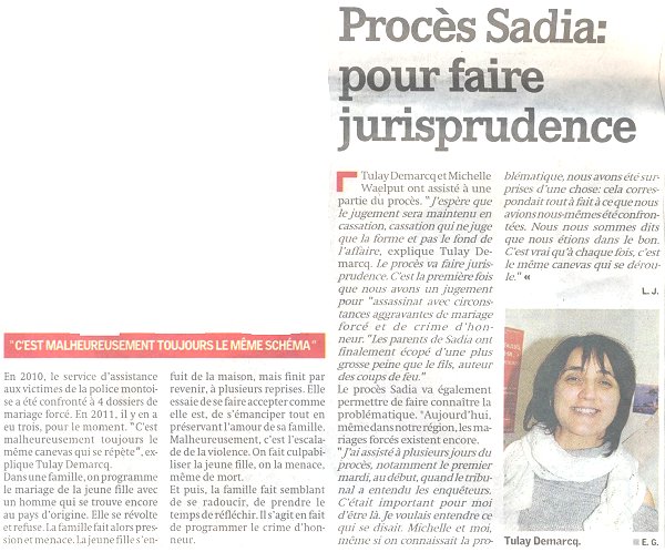 Désormais, les deux femmes ont été rejointes dans leur combat. Elles multiplient les démarches. “ Nous avons remarqué qu’à la police, il y avait quelques couacs au niveau de la prise en charge, explique Tulay Demarcq. À qui ces jeunes doivent être adressées? Il n’y a rien de spécifique pour elles. Sadia, par exemple, a été placée dans un refuge pour femmes. Elle s’est trouvée en complet décalage avec les autres bénéficiaires. Elle a fini par retourner chez ses parents. Et puis, certains policiers ne se rendent pas compte du danger encouru par ces jeunes filles. ”