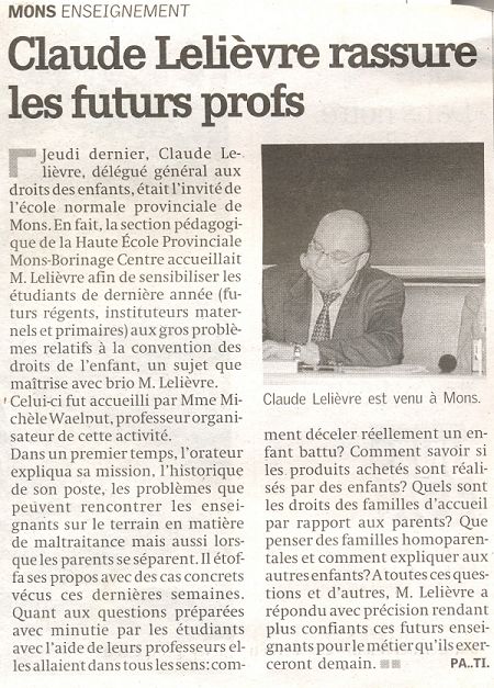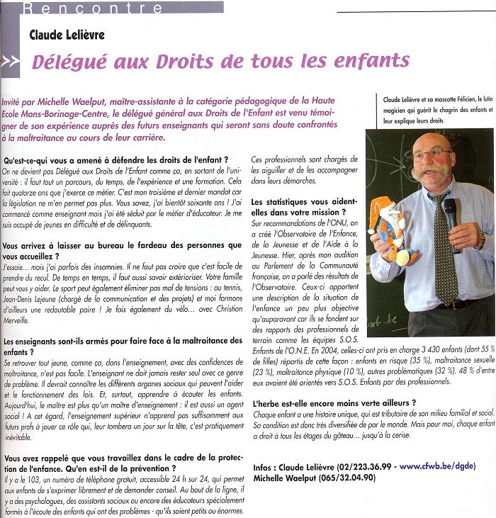 Rencontre avec Claude Lelièvre, Délégué Général aux Droits de l'Enfant, 19 janvier 2006
