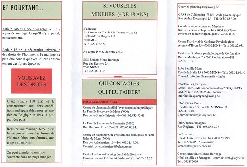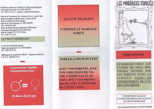 Rencontre-débat du 8 mars (Journée Internationale de la Femme) sur les mariages forcés Organisation: le Comité Egalité Femmes/Hommes des Socialistes Mons-Borinage